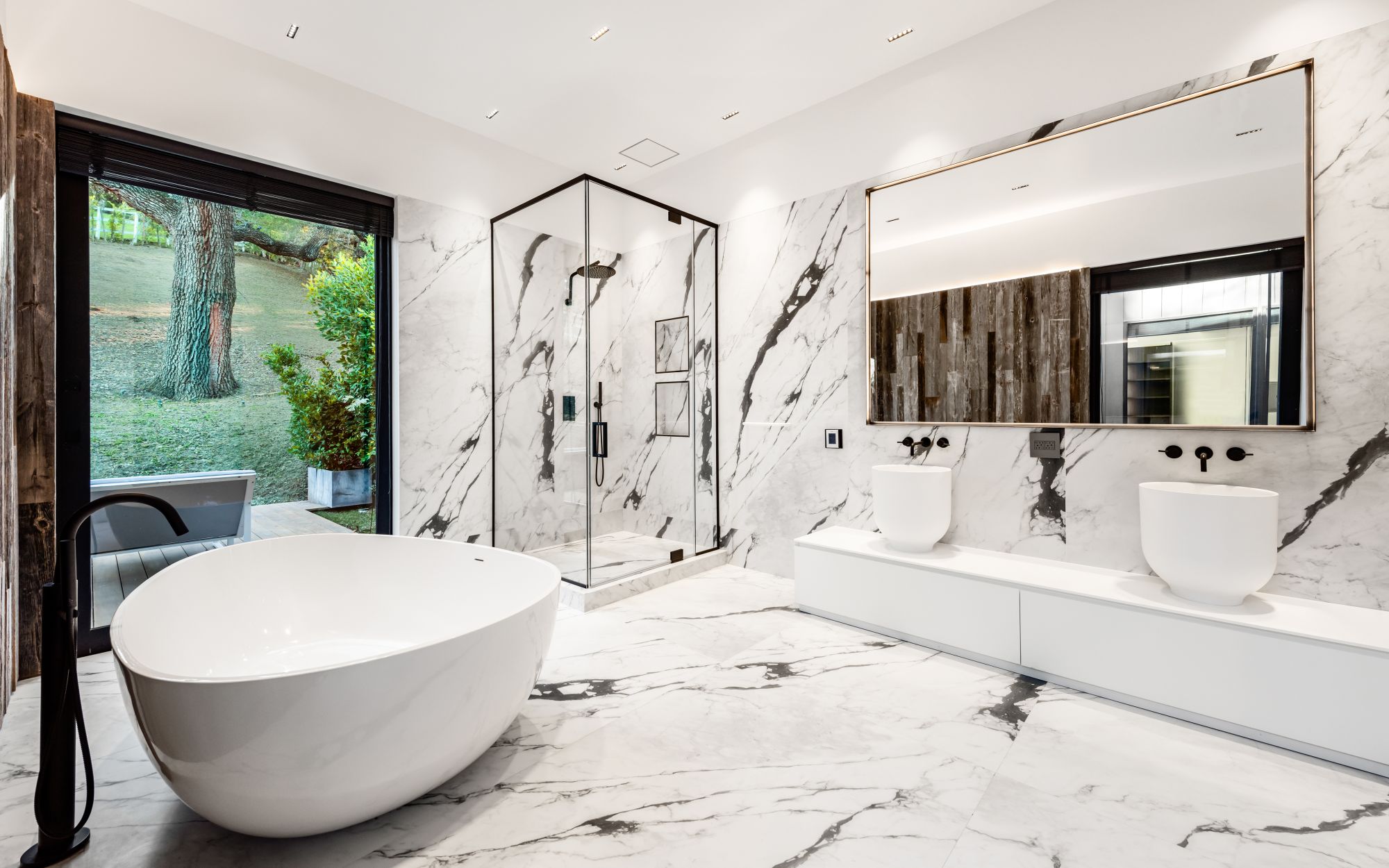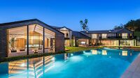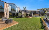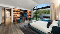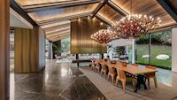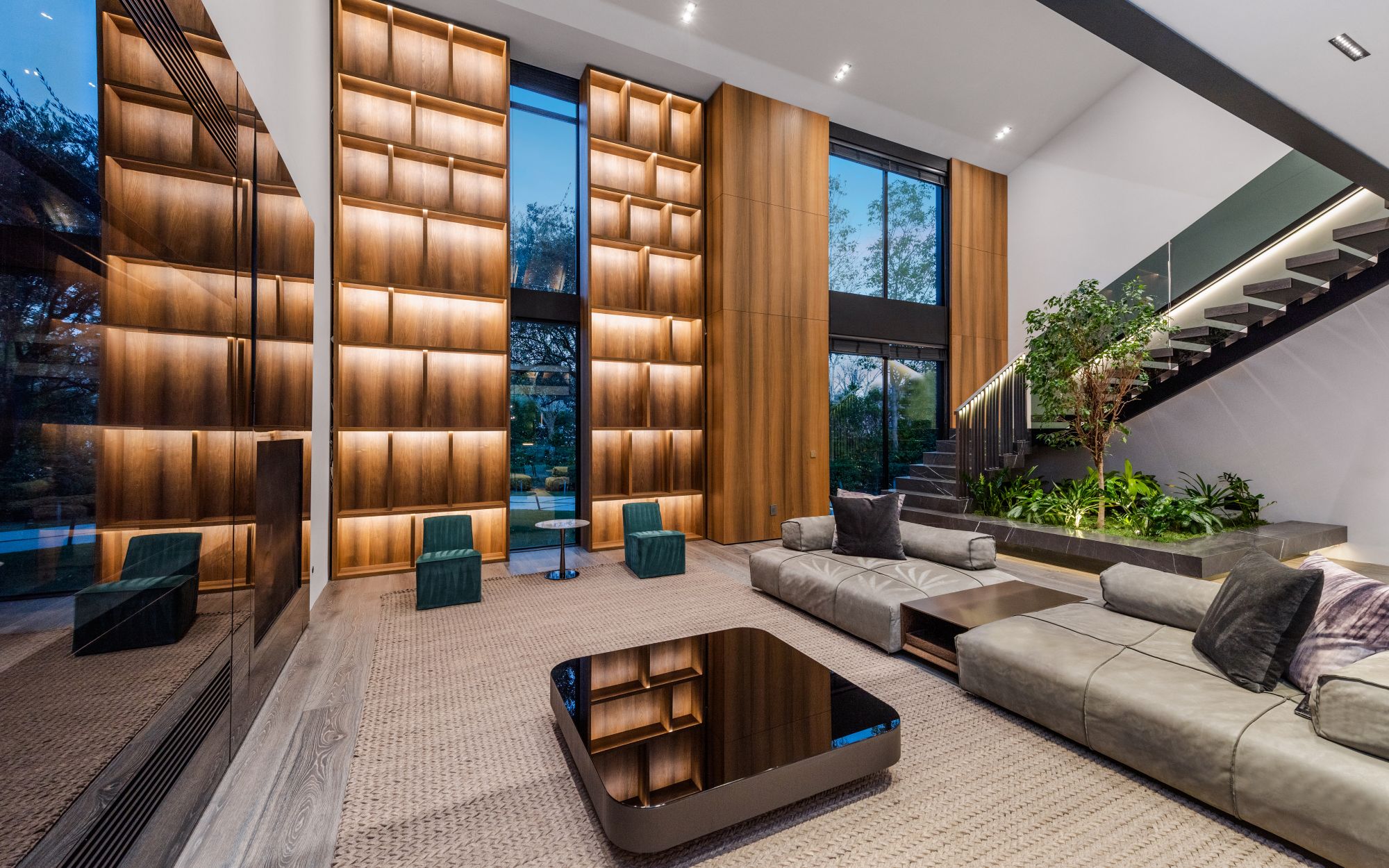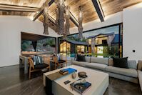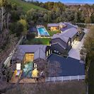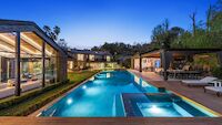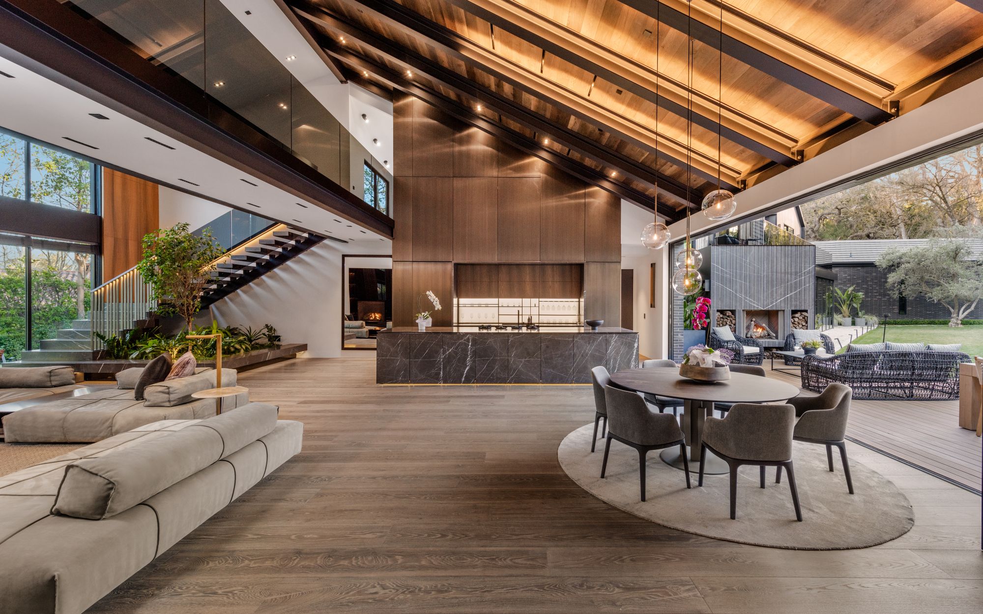Escape to your own modern farmhouse retreat in the exclusive guard-gated community of Hidden Hills. Designed by Nobel LA in 2021, this home sits at the end of a private cul-de-sac and is surrounded by lush landscaping for ultimate privacy. Enter the formal dining room lined with Pietra marble floors, two custom chandeliers designed by Preciosa Lighting, and a custom brass floating fireplace that separates the living room. The professional grade chef's kitchen sits behind the floor-to-ceiling wine display. State-of-the-art amenities include a home theater and fitness/music studio. The expansive great room features double vaulted ceilings, panoramic windows and opens to your own backyard oasis with a 65' pool and spa. Dine al fresco on the patio or poolside under the cabana with indoor sitting area/game room, bathroom, built-in BBQ, firepit, and video wall. Stunning primary suite offers fireplace with sitting area, designer walk-in closet, and spa-like bathroom with dual chiseled stone vanities, steam shower, and soaking tub. 4 additional guest suites and separate staff quarters provide plenty of space. Detached guest house with kitchenette, walk-in closet, and plunge pool. 4-car garage and motor court offer ample parking. Live in luxury with the best amenities at this entertainer's paradise.